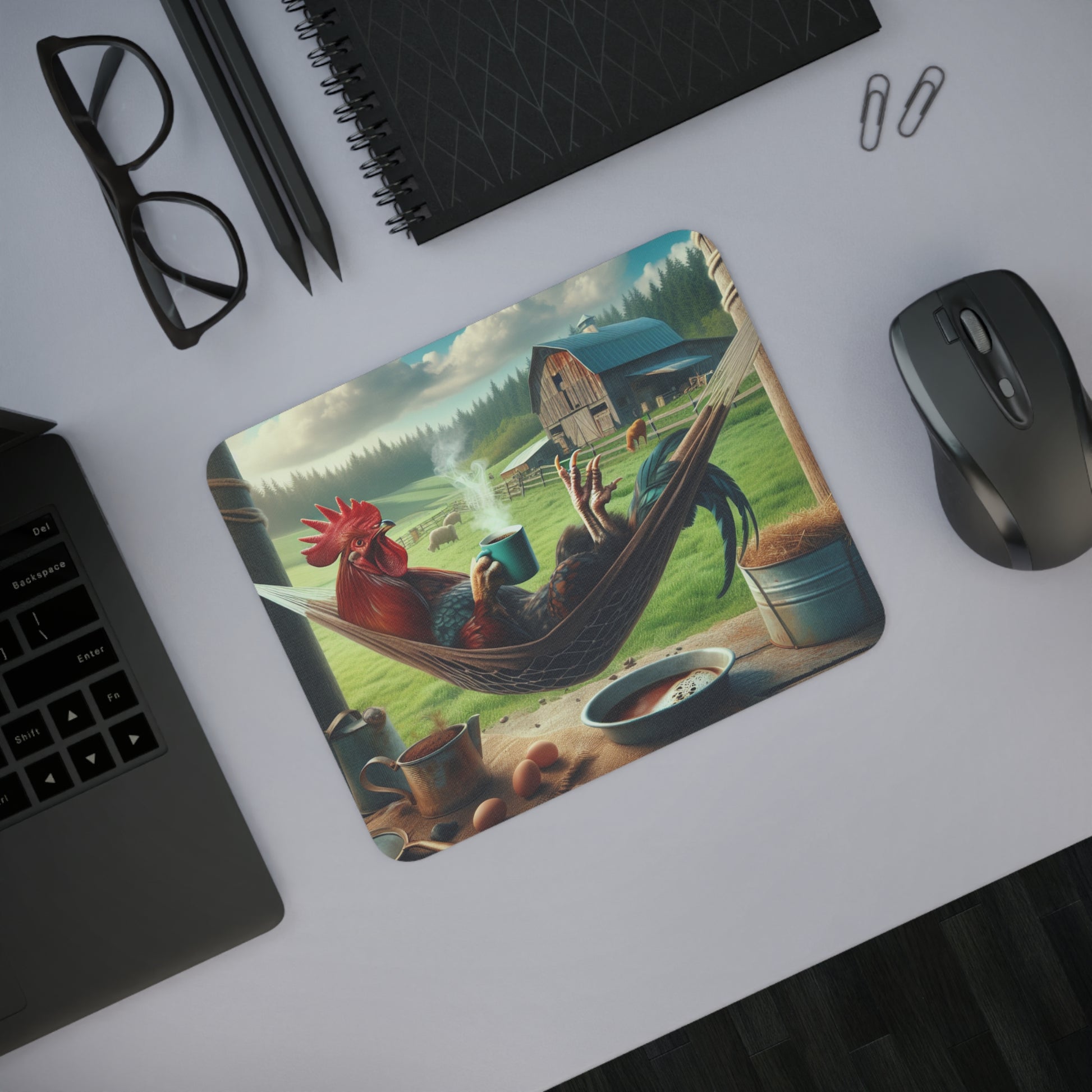 rooster just kicking it mouse pad